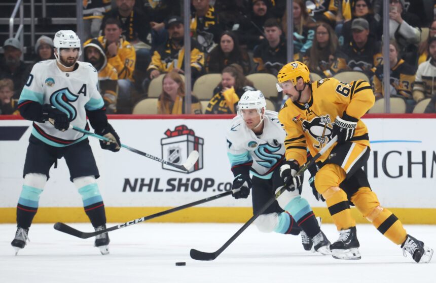 Seattle opened the scoring early in the second after Marchment capitalized on a turnover, beating Murashov with a wrist shot from the left faceoff circle. Pittsburgh answered later in the period when Connor Dewar intercepted a clearing attempt and set up Crosby for a quick one-timer.